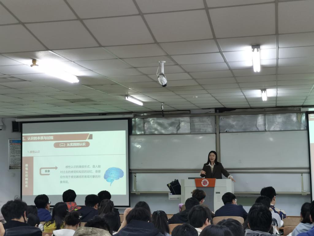 刘如意老师的教学内容为新版《马克思主义基本原理》教材第二章第一节第三目“认识的本质与过程”。刘老师首先通过师生互动、提问学生导入新课,然后通过案例、故事等多种形式讲道理、解原理、释疑惑,详细讲述了马克思主义的认识论及其两次飞跃。课后,全体听课教师对刘如意老师的授课情况进行点评和讨论。大家一致认为刘如意老师授课举止大方、逻辑清晰、内容娴熟、举例得当,既有师生互动环节、又能有机融入党的二十大精神,是一堂优秀、生动的示范课。