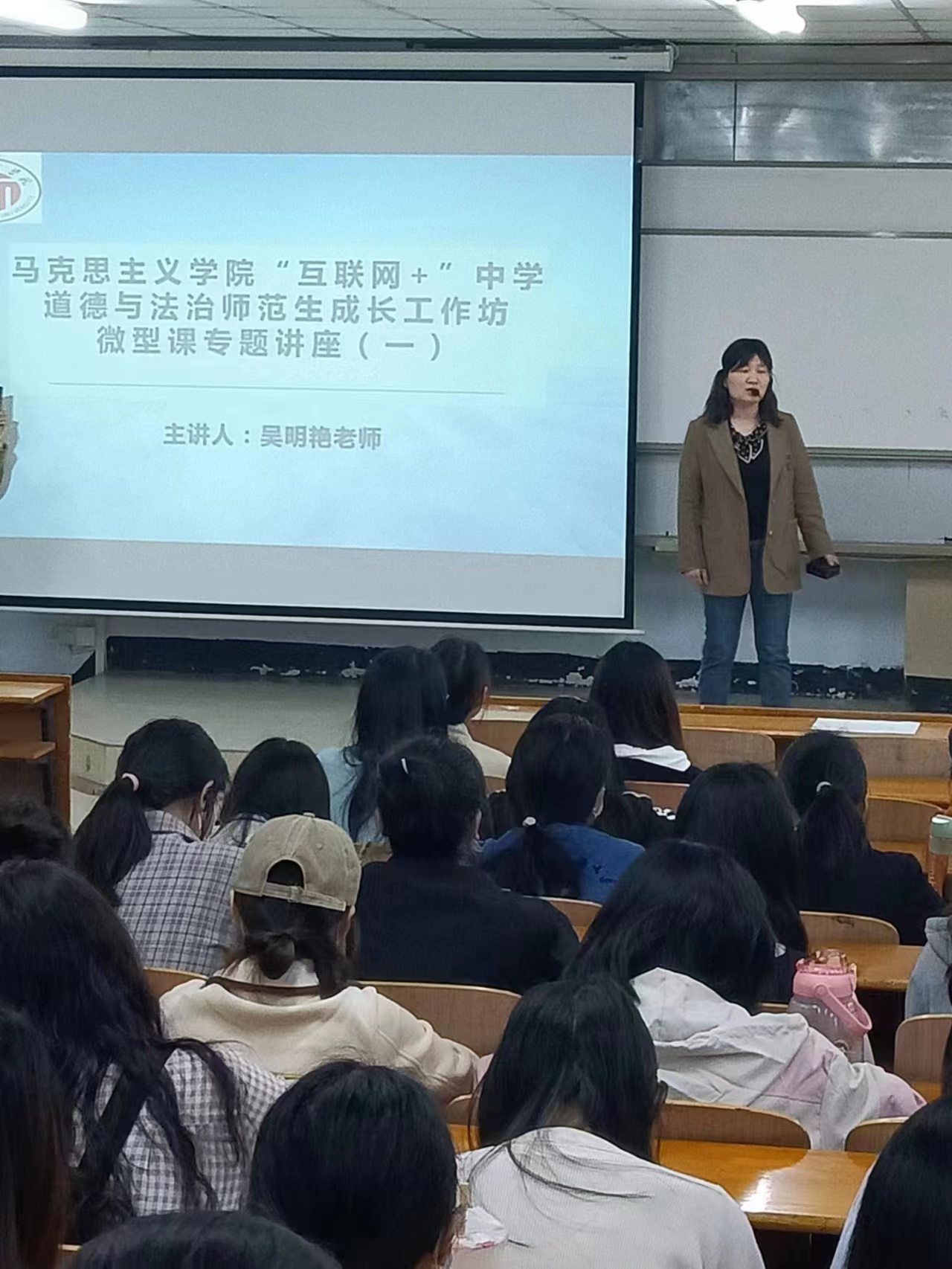 接着,吴明艳以《如何上好微型课》为专题,从何为微型课、微型课与说课和微课的区别、微型课如何出彩、微型课备课时几个常见问题、关于答辩等方面,对微型课作了全面深入的剖析和富有感染力的讲解,使坊员对微型课有了全面的认知和把握。