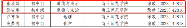 日前,河南省教育厅下发《关于公布第二十届高等学校师范类专业毕业生教学技能比赛结果的通知》(教师〔2023〕209号),艾弗森贝博ballbet官网思想政治教育专业2023届毕业生王雅昕获得初中组道德与法治学科一等奖,张欣鸽、孙安琪获得初中道德与法治学科三等奖,宋玉老师获得优秀辅导教师奖。
