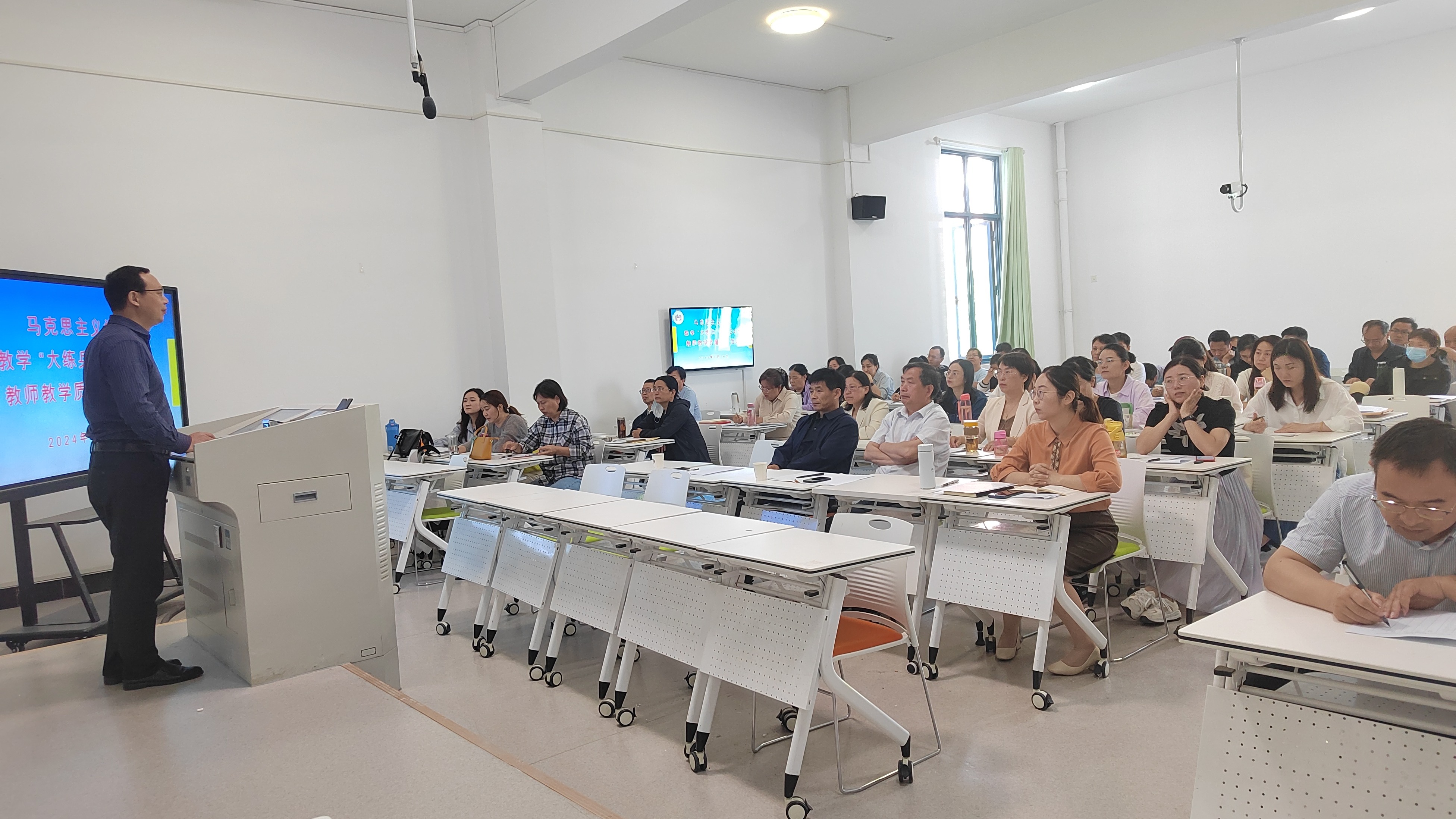4月26日,贝博官网组织开展了2024年思想政治理论课教学技能“大练兵”活动,全体思政课教师参加了此次活动。