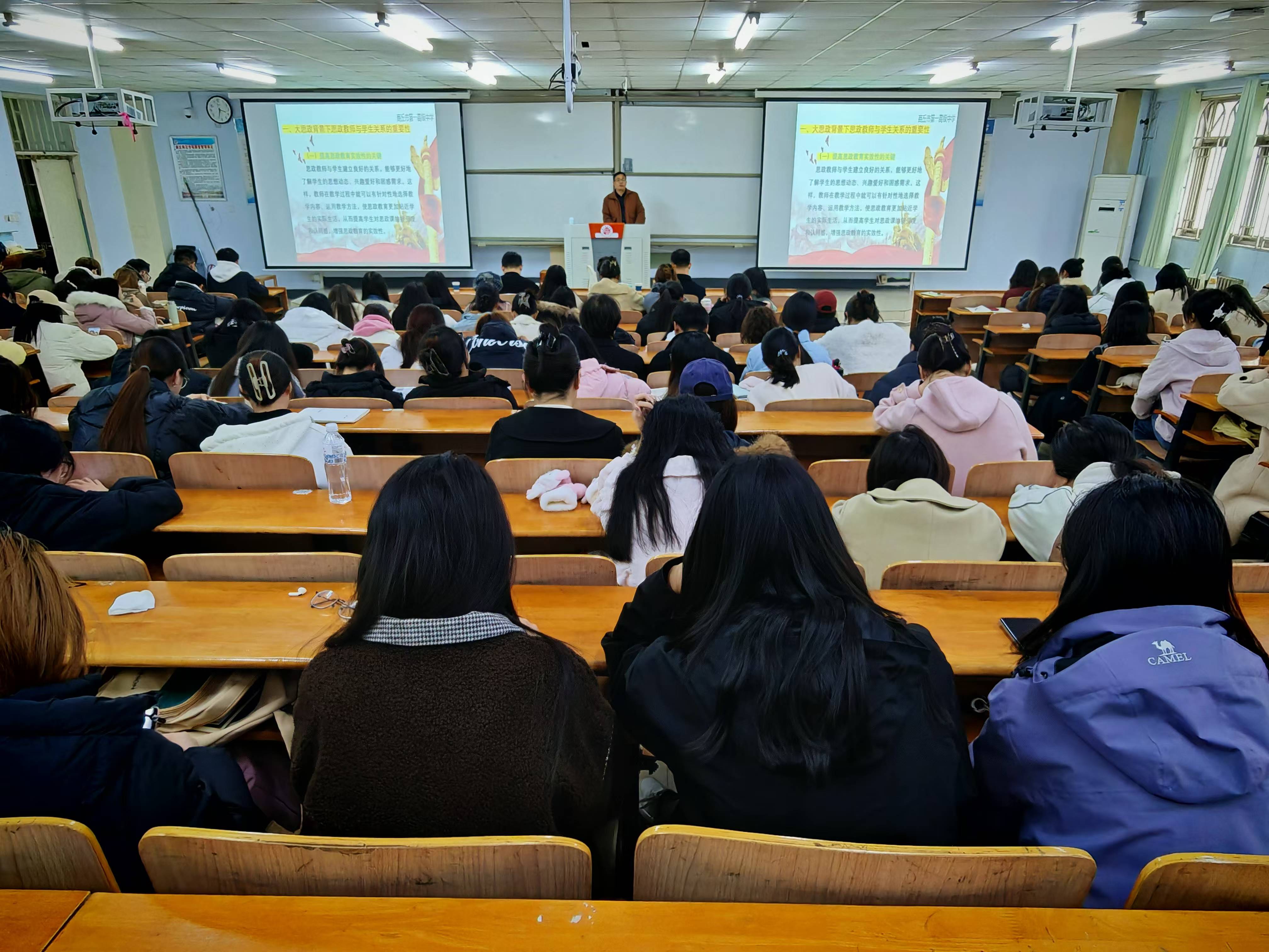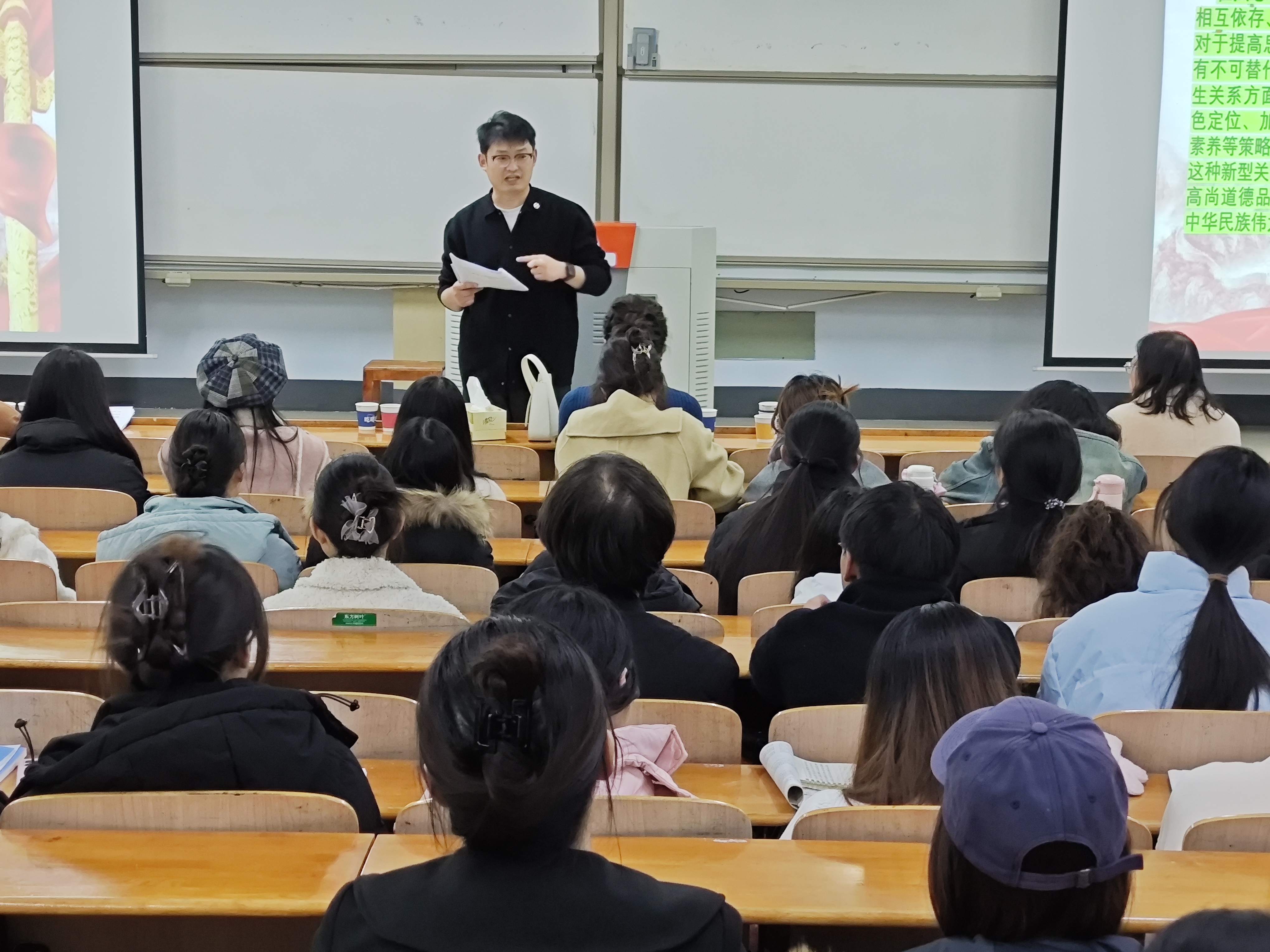 随后,刘旭峰坊主给坊员作思政课教师职业道德规范专题讲座《大思政背景下思政教师与学生的关系》,深入探讨大思政背景下思政教师与学生关系的重要性、现状、面临的挑战、以及构建新型关系的策略等方面,鼓励同学们坚定理想信念,培养高尚情操,扎实知识技能,为实现中华民族伟大复兴的中国梦贡献力量。讲座后,陈通老师和高秋艳老师对讲座进行了总结和点评。
