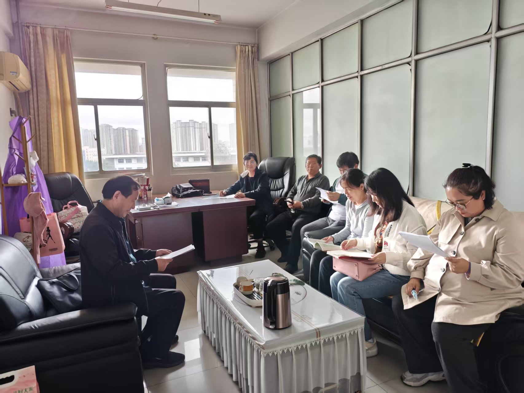 9月3日,中共中央总书记、国家主席、中央军委主席习近平在纪念中国人民抗日战争暨世界反法西斯战争胜利80周年大会上发表重要讲话强调,传承和弘扬伟大抗战精神,踔厉奋发、勇毅前行,为以中国式现代化全面推进强国建设、民族复兴伟业而团结奋斗。为深入学习领会这一重要讲话精神,切实推动红色文化资源融入教学实践,提升思政课育人实效, 9月19日下午,思想道德与法治教研室在应天楼501室成功开展“伟大抗战精神融入《思想道德与法治》课程”主题教研活动。本次活动由教研室主任朱坤主持,教研室全体教师参与。