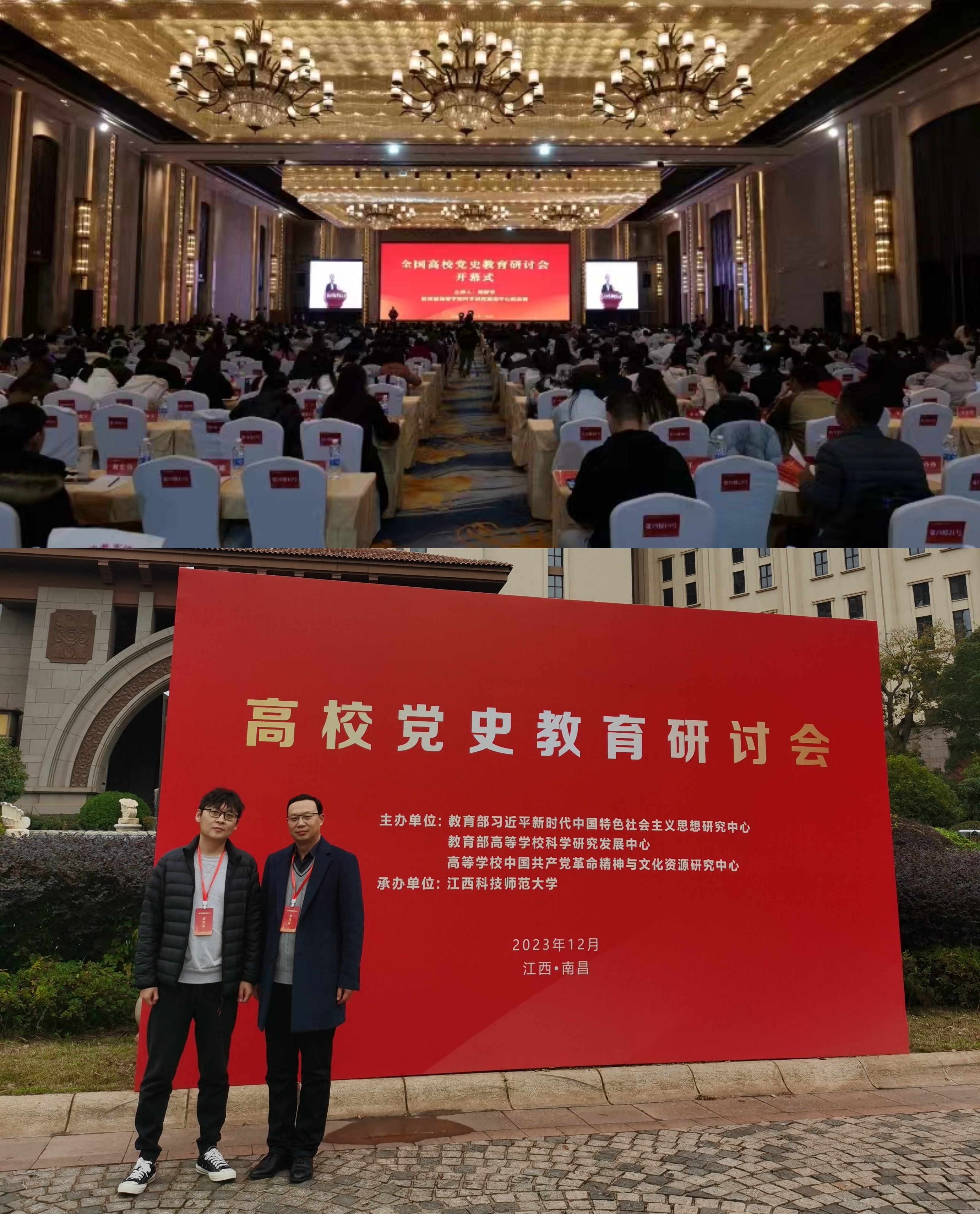 为深入学习贯彻党的二十大精神,弘扬伟大建党精神,传承中国共产党人精神谱系,推动中共党史、伟大建党精神与文化资源研究教育宣传,充分发挥中共党史资政育人作用,12月2日至4日,由教育部习近平新时代中国特色社会主义思想研究中心、教育部高等学校科学研究发展中心、高等学校中国共产党革命精神与文化资源研究中心主办,江西科技师范大学承办的以“伟大建党精神与中国式现代化”为主题的高校党史教育研讨会在江西省南昌市召开。来自中共中央党校(国家行政学院)、北京大学、中国人民大学、北京师范大学、复旦大学、武汉大学等300余所高校、党校、科研院所,以及《光明日报》《中国教育报》《中国高校社会科学》《史学月刊》《江西社会科学》《求实》等相关期刊媒体700余名专家学者和师生参加会议。贝博官网教师张灯和孙国栋两位博士应邀参加会议。