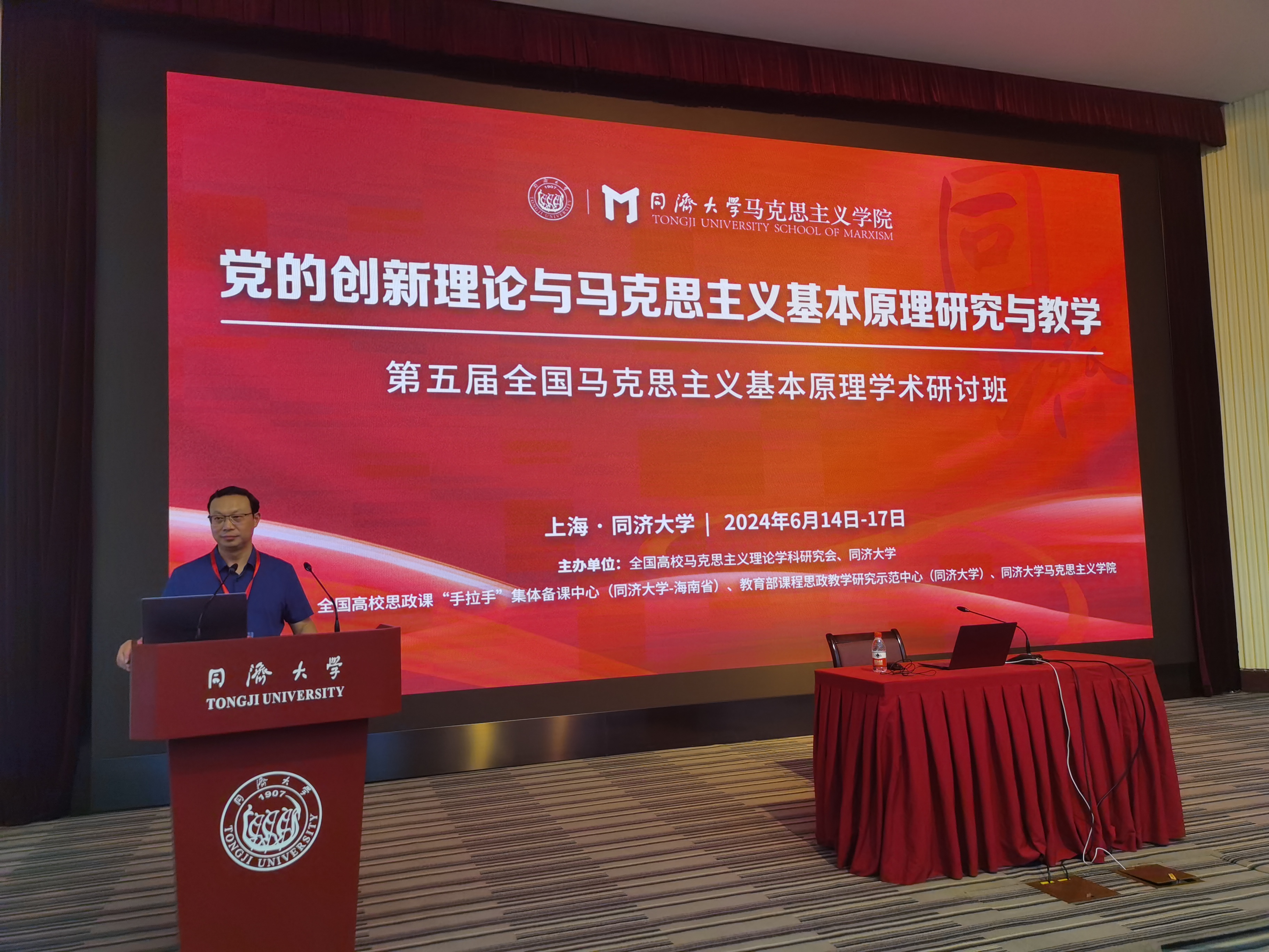 为深入学习贯彻习近平总书记对学校思政课建设重要指示精神,贯彻落实新时代学校思政课建设推进会重要部署,持续助推马克思主义基本原理学科建设提质增效、走向纵深,研究阐释党的创新理论中的原理性学理化成果,不断开辟马克思主义中国化时代化新境界,守正创新推动思政课建设内涵式发展,6月14日-16日,由全国高校马克思主义理论学科研究会与同济大学共同主办的“第五届全国马克思主义基本原理学术研讨班”在同济大学成功举行。本次研讨班的主题为“党的创新理论与马克思主义基本原理研究与教学”,由全国高校思政课“手拉手”集体备课中心(同济大学-海南省)、教育部课程思政教学研究示范中心(同济大学)、同济大学艾弗森贝博ballbet官网承办。全国高校马克思主义理论学科研究会会长、国家一级教授、中国人民大学艾弗森贝博ballbet官网张雷声教授,全国高校马克思主义理论学科研究会副会长、中山大学艾弗森贝博ballbet官网钟明华教授,北京大学艾弗森贝博ballbet官网孙熙国教授、东北大学艾弗森贝博ballbet官网田鹏颖教授、复旦大学艾弗森贝博ballbet官网杨德山教授、吉林大学艾弗森贝博ballbet官网吴宏政教授、复旦大学艾弗森贝博ballbet官网马拥军教授、南京师范大学艾弗森贝博ballbet官网王刚教授,为本次研讨班作主旨报告。同济大学党委副书记吴广明教授出席会议并致辞。来自全国140多所高校的200余名思政课骨干教师参加研学,《马克思主义理论学科研究》《青年学报》《上海党史与党建》《上海师范大学学报》(哲社版)等期刊编辑老师与会。