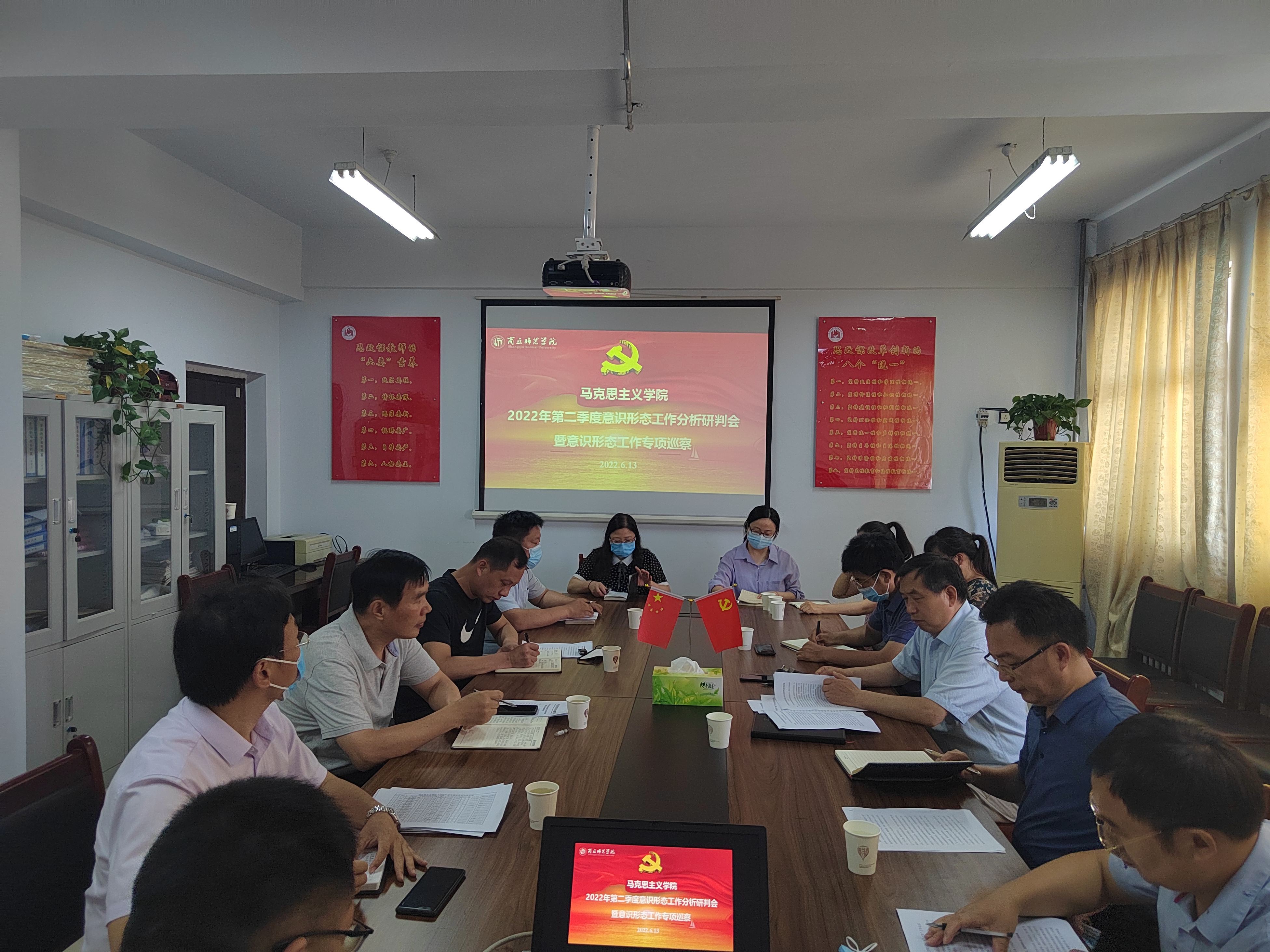根据校党委宣传部关于召开2022年第二季度意识形态工作分析研判会的通知精神,艾弗森贝博ballbet官网于6月13日下午在应天楼809会议室召开2022年第二季度意识形态工作分析研判会。学校意识形态工作专项巡察组第二组组长、校党委副书记、工会主席朱伟,巡察组成员、党政办公室副主任付先召,党委宣传部精神文明建设办公室主任李庆军一行莅临指导。会议由艾弗森贝博ballbet官网党委书记龚志宏主持。学院党政领导班子成员、团委书记、学工办主任、辅导员、班主任等参加会议。与会人员围绕会议主题逐一进行发言,分析了当前的热点问题和意识形态领域可能存在的风险点,并提出了针对性的防范措施。