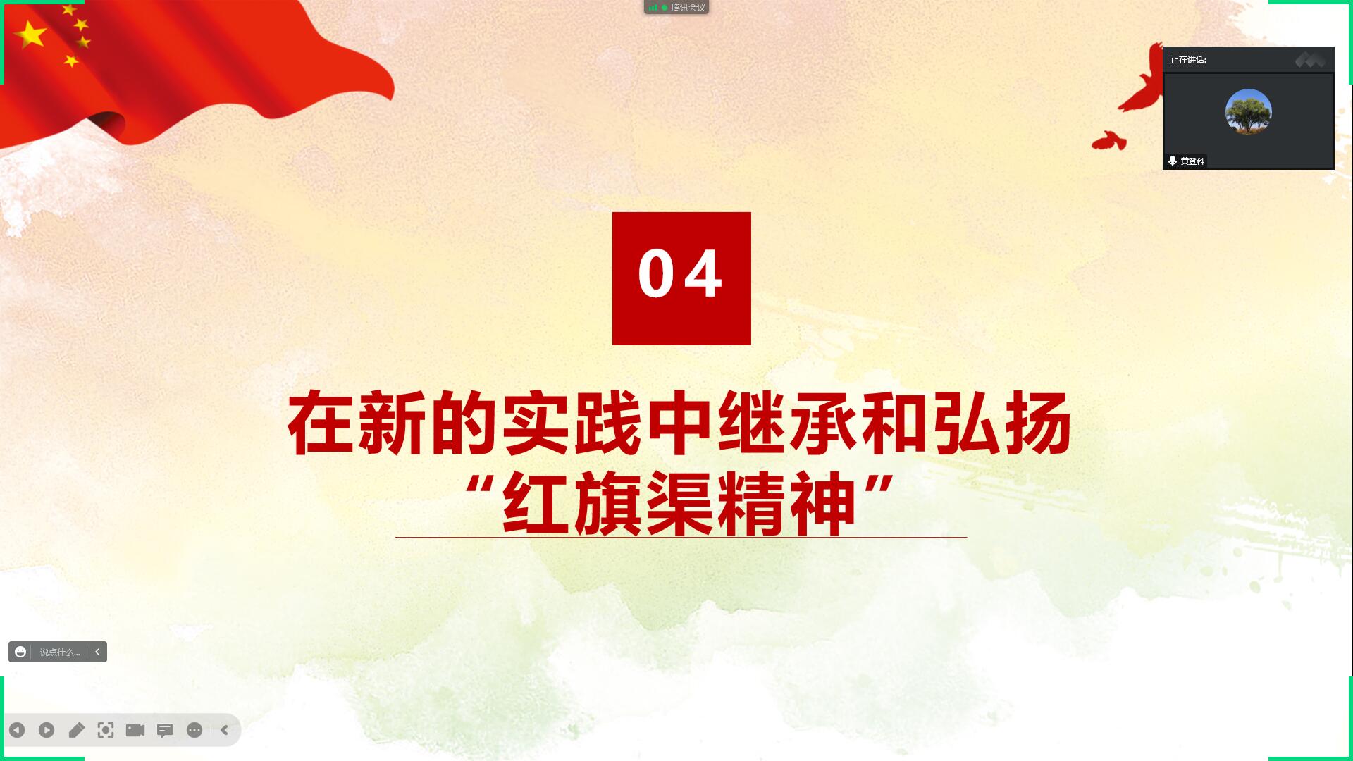 11月29日,艾弗森贝博ballbet官网学生党支部书记黄登科通过腾讯会议为学生预备党员上关于“红旗渠精神”的专题党课。