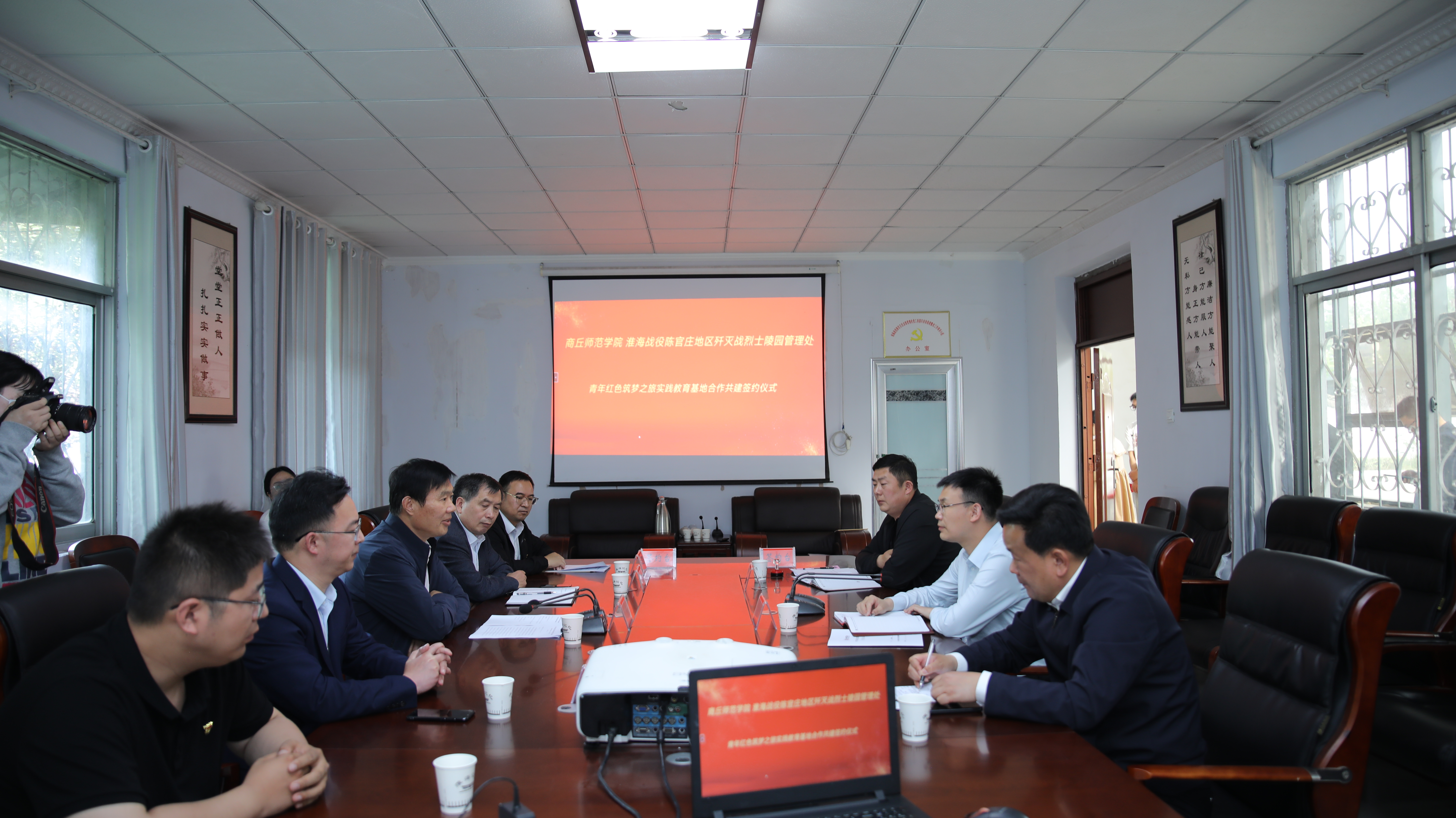 5月11日,校党委副书记、工会主席朱伟带领艾弗森贝博ballbet官网师生一行赴淮海战役陈官庄地区歼灭战纪念馆开展座谈暨“青年红色筑梦之旅”教育实践基地签约和揭牌活动。永城市委副书记常忠伟、副市长张彩旗、淮海战役陈官庄地区歼灭战纪念馆张向远等出席活动,活动由张彩旗主持。