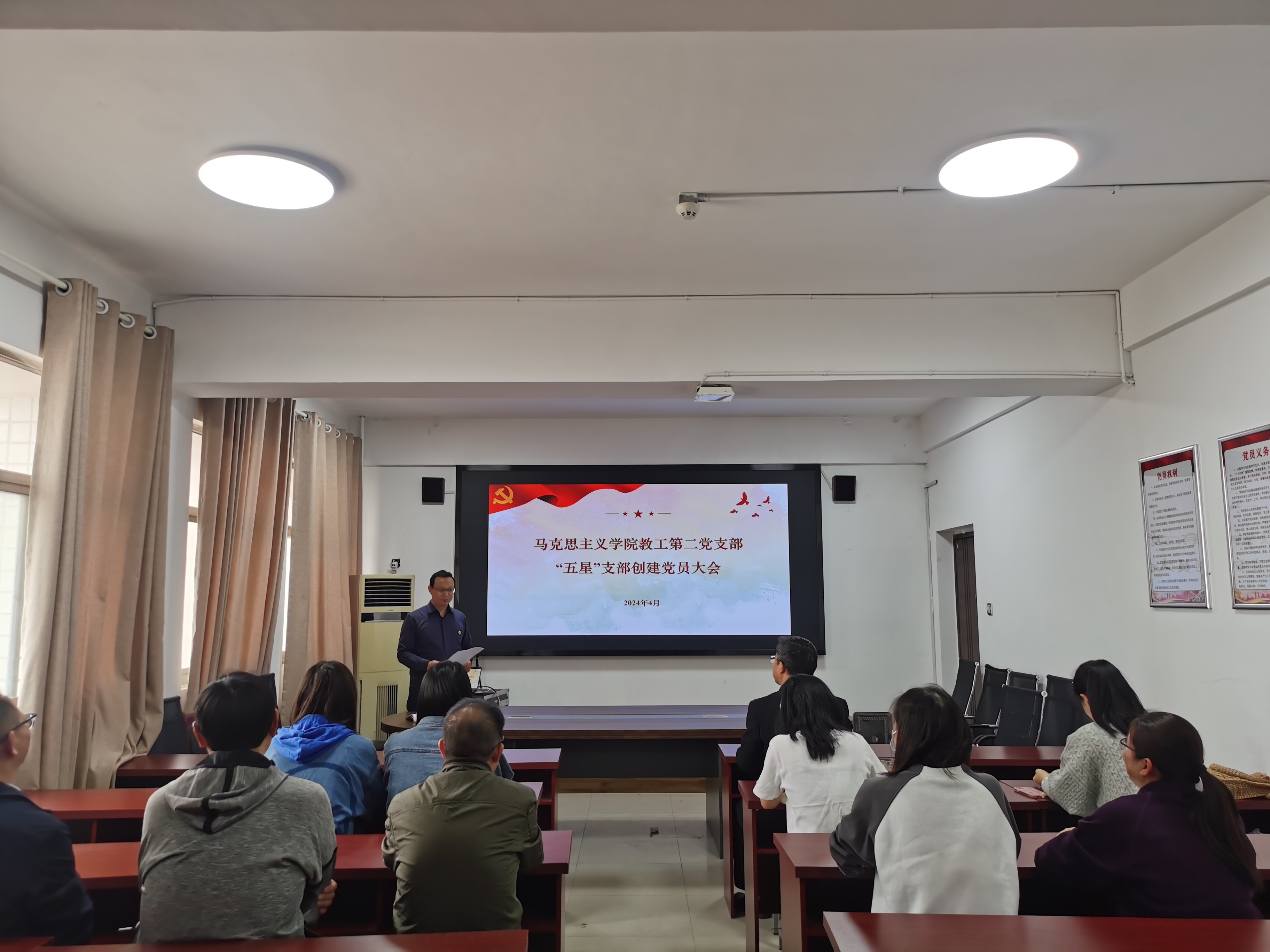 大会首先学习了《中国共产党支部工作条例(试行)》《中国共产党纪律处分条例》《关于开展“五星”支部创建的实施方案(试行)的通知》(商师党发〔2024〕27号)等文件精神,重点学习“五星”支部创建的总体要求、创建范围、重点任务、时间安排、评星办法、保障机制、工作要求等主要内容,尤其是对“五星”支部创建工作重点任务指标体系(教学学院党委)进行系统学习,并对政治坚定星、队伍过硬星、作风优良星、领航示范星、融合发展星等五个一级指标下的二三级指标进行梳理对照和细化学习。