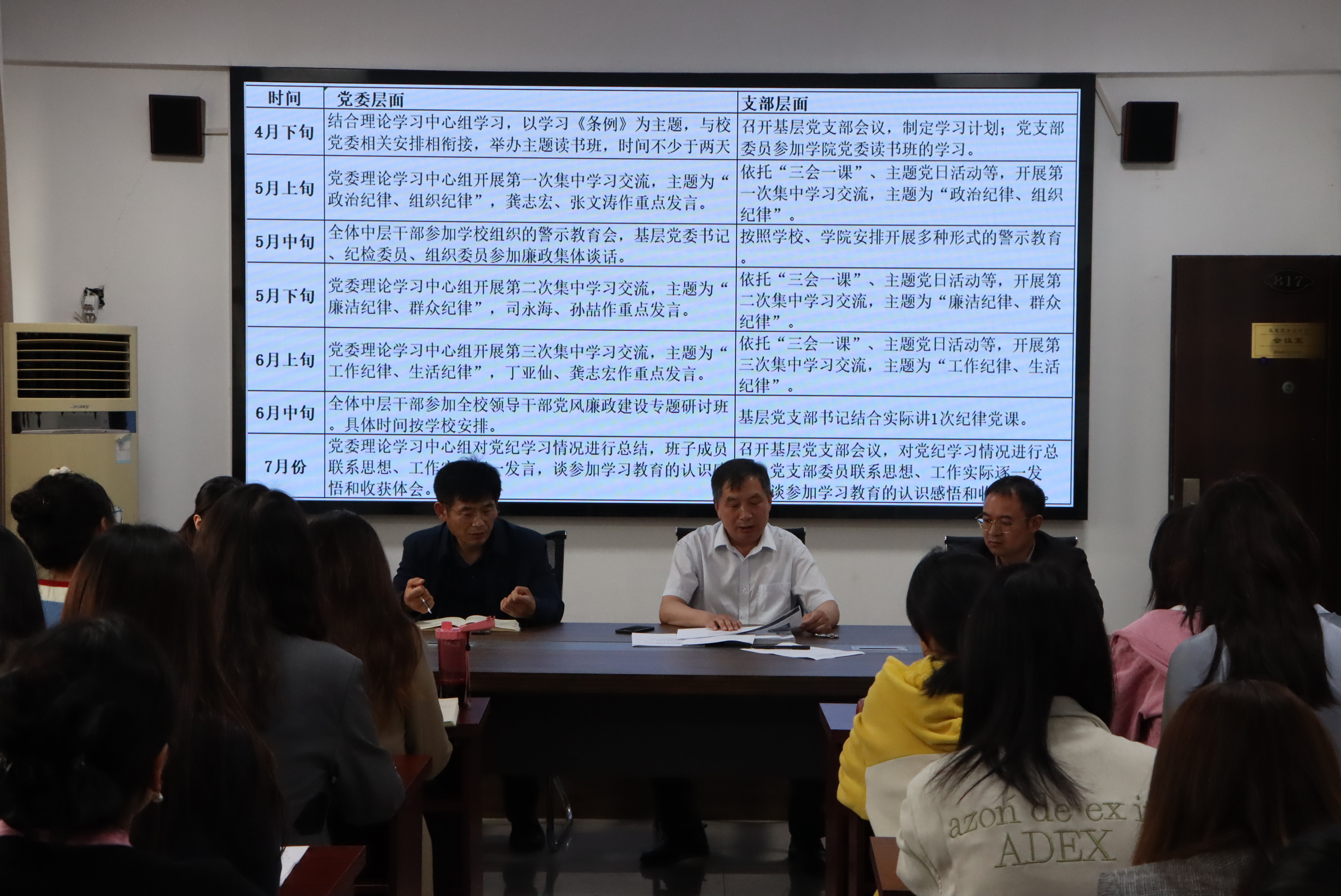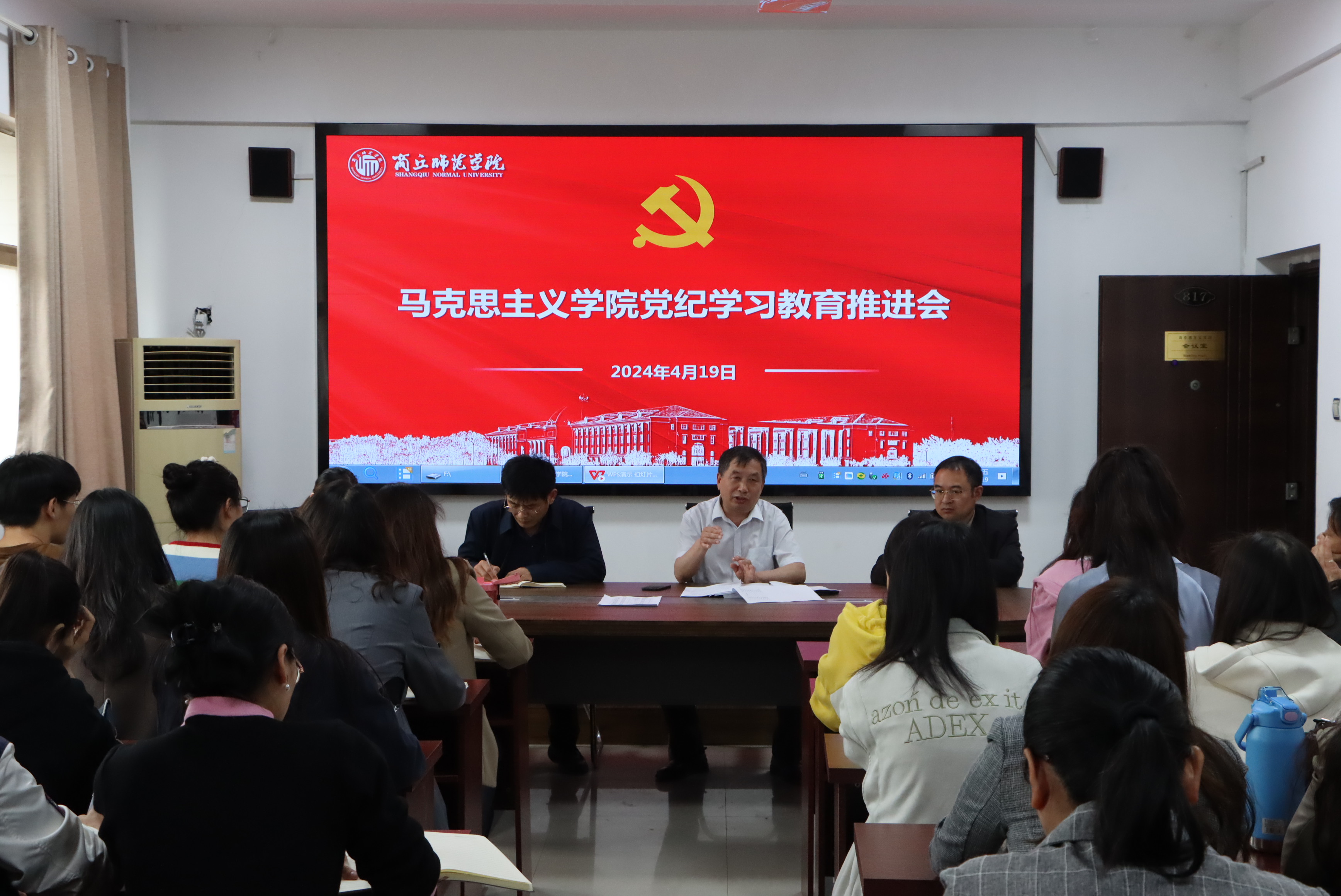 4月19日,艾弗森贝博ballbet官网在梁园校区应天楼817会议室召开党纪学习教育推进会,艾弗森贝博ballbet官网全体师生党员参加。