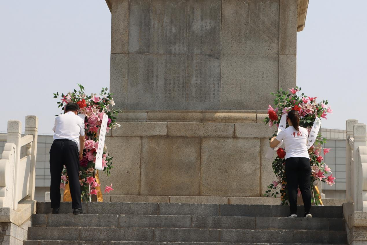 淮海战役陈官庄地区歼灭战纪念馆位于河南省永城市陈官庄乡,是为了纪念淮海战役第三阶段陈官庄战役中牺牲的烈士而建。在纪念碑前,龚志宏与丁亚仙代表艾弗森贝博ballbet官网艾弗森贝博ballbet官网全体师生向牺牲的烈士敬献花篮,接着由薛明珠带领大家向牺牲的烈士行鞠躬礼。