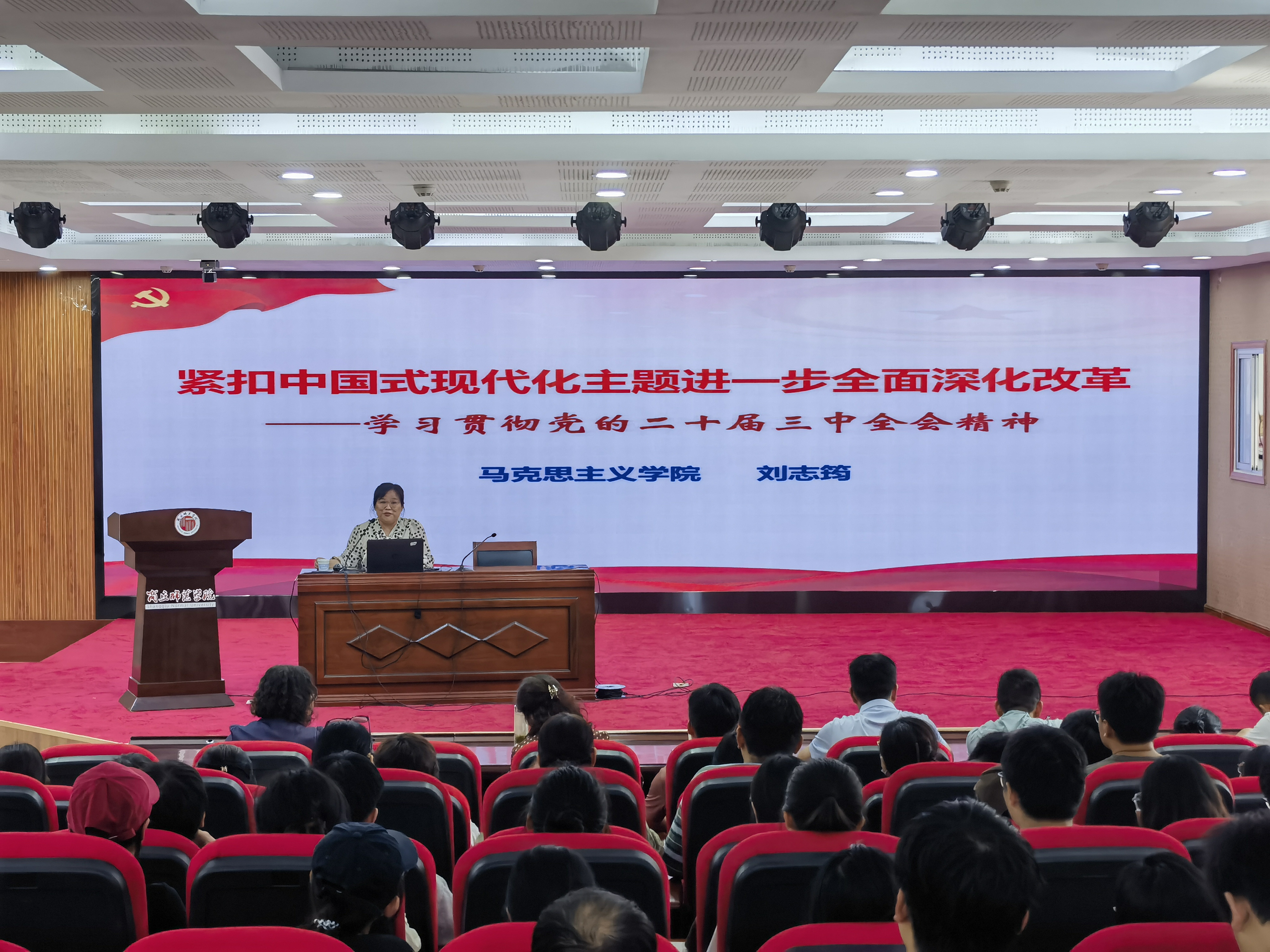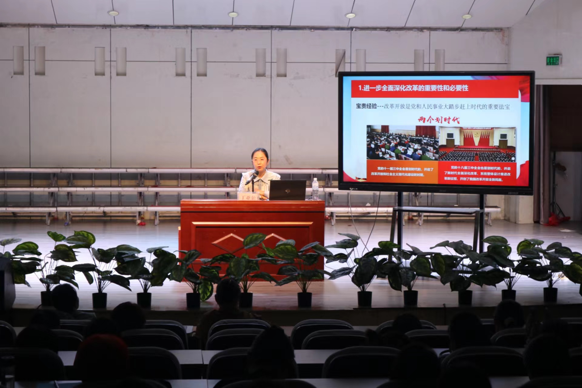宣讲团成员、艾弗森贝博ballbet官网习近平新时代中国特色社会主义思想概论教研室主任刘志筠副教授以《紧扣中国式现代化主题进一步全面深化改革——学习贯彻党的二十届三中全会精神》为题,分别为教师教育学院、测绘与规划学院师生作党的二十届三中全会精神理论宣讲。宣讲分为三个部分:改革开放以来的十次“三中全会”及主要议题;中国式现代化对进一步全面深化改革提出新要求;进一步全面深化改革推进中国式现代化的重大部署。