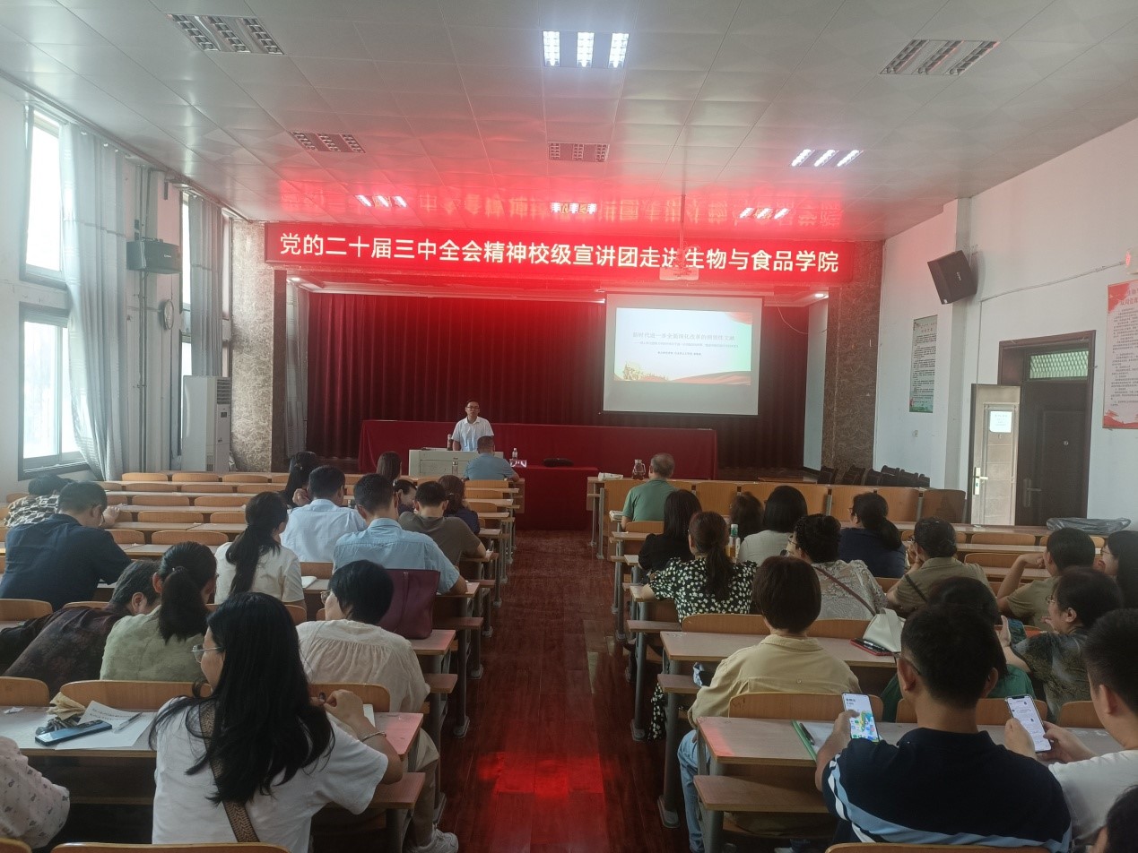 宣讲团成员、艾弗森贝博ballbet官网谢敏振博士以《新时代进一步全面深化改革的纲领性文件——党的二十届三中全会精神解读》为题,为生物和食品学院师生作党的二十届三中全会精神理论宣讲。宣讲主要从牢牢把握进一步全面深化改革的重大意义、总体目标、鲜明主题、重大原则、重大举措、根本保证、坚守底线七个部分剖析了《中共中央关于进一步全面深化改革、推进中国式现代化的决定》。