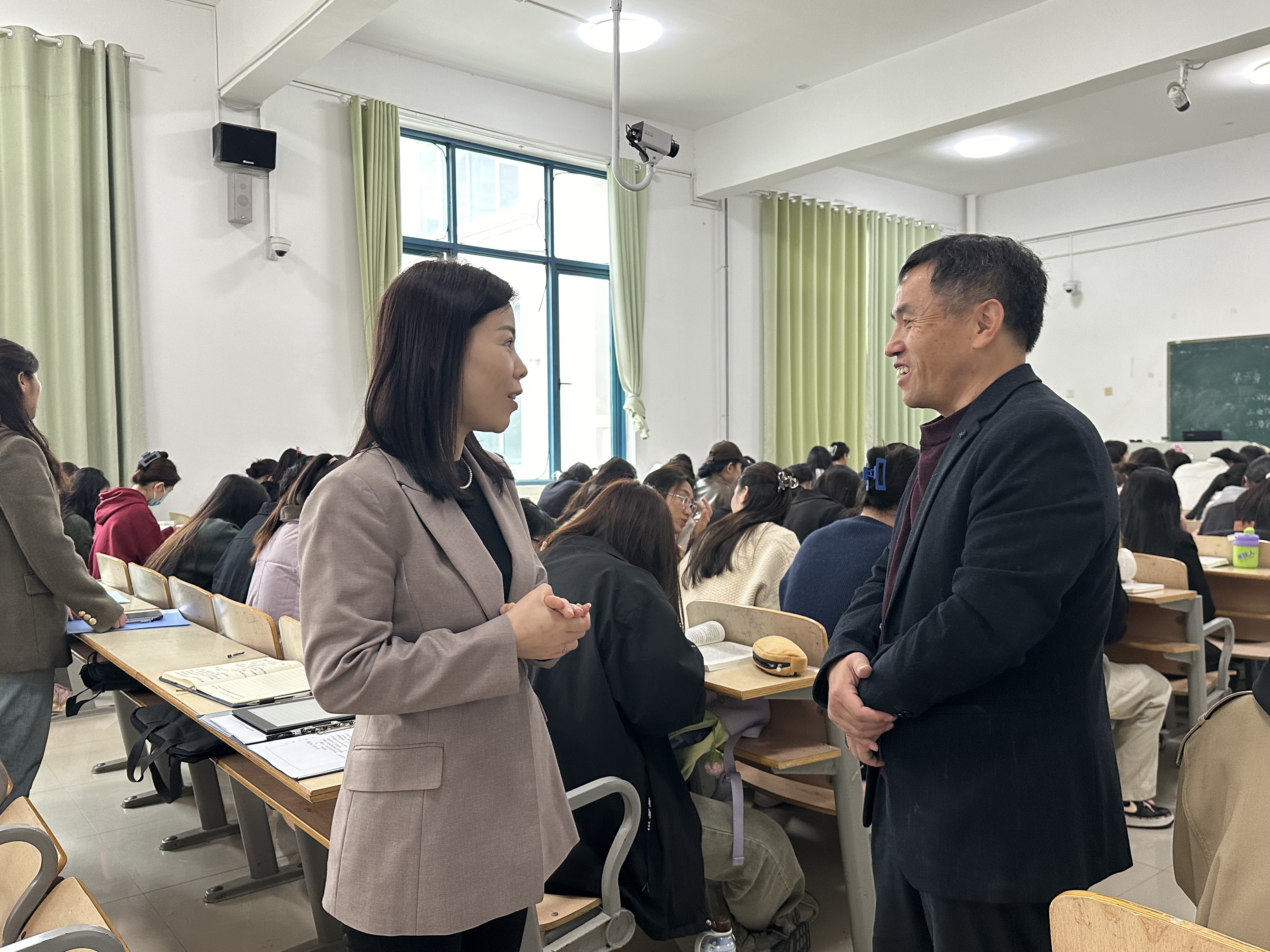调研组采取“四不两直”的方式,随机抽取听课教师,听取了刘志筠、何峰两位老师的《习近平新时代中国特色社会主义思想概论》课。课后,调研组成员与师生进行了亲切交谈,在充分肯定两位授课教师工作态度认真、基本功扎实、及时将党的二十届三中全会精神融入思政课教学同时,也提出了一些建设性的改进意见。