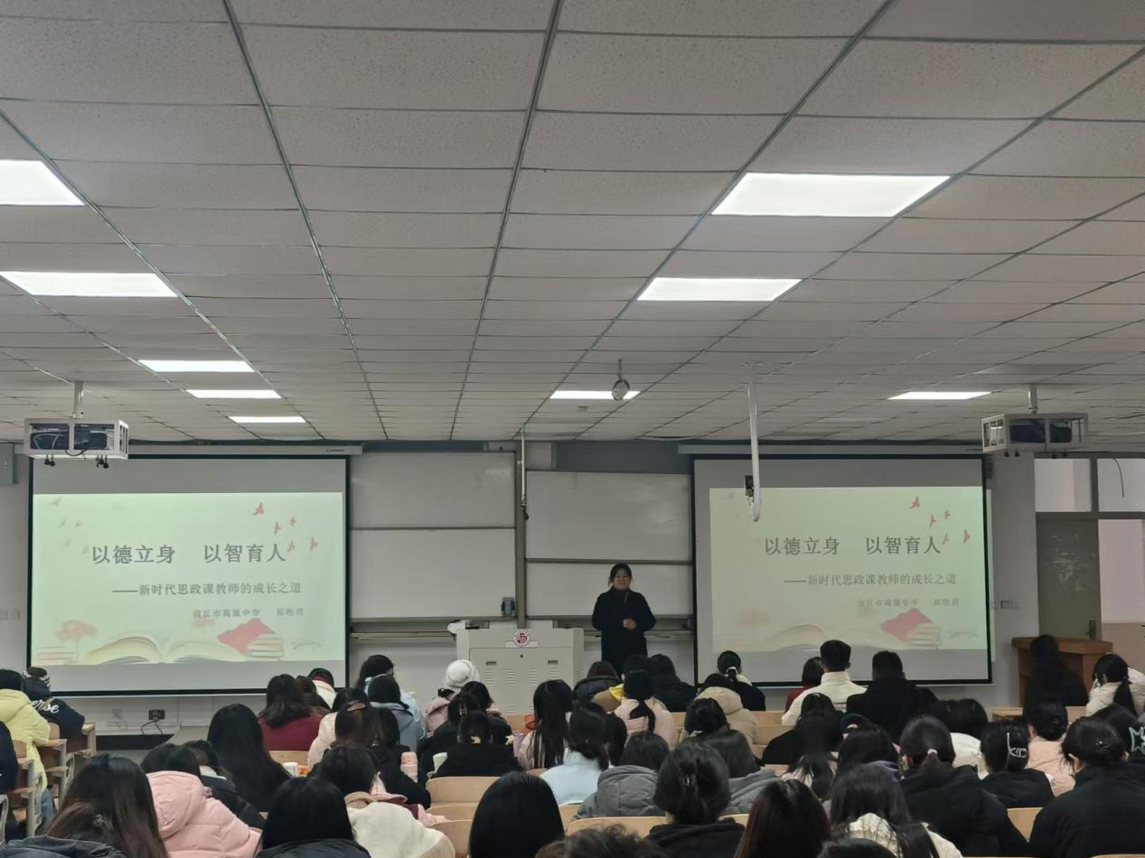 在讲座过程中,郑艳君老师结合自己多年的教学经验,分享了“以德立身,以智育人”的深刻内涵。她指出,思政课教师不仅要具备扎实的专业知识,更要以身作则,用高尚的道德情操和人格魅力感染学生。在日常教学中,教师应注重培养学生的品德修养,引导他们树立正确的世界观、人生观和价值观。