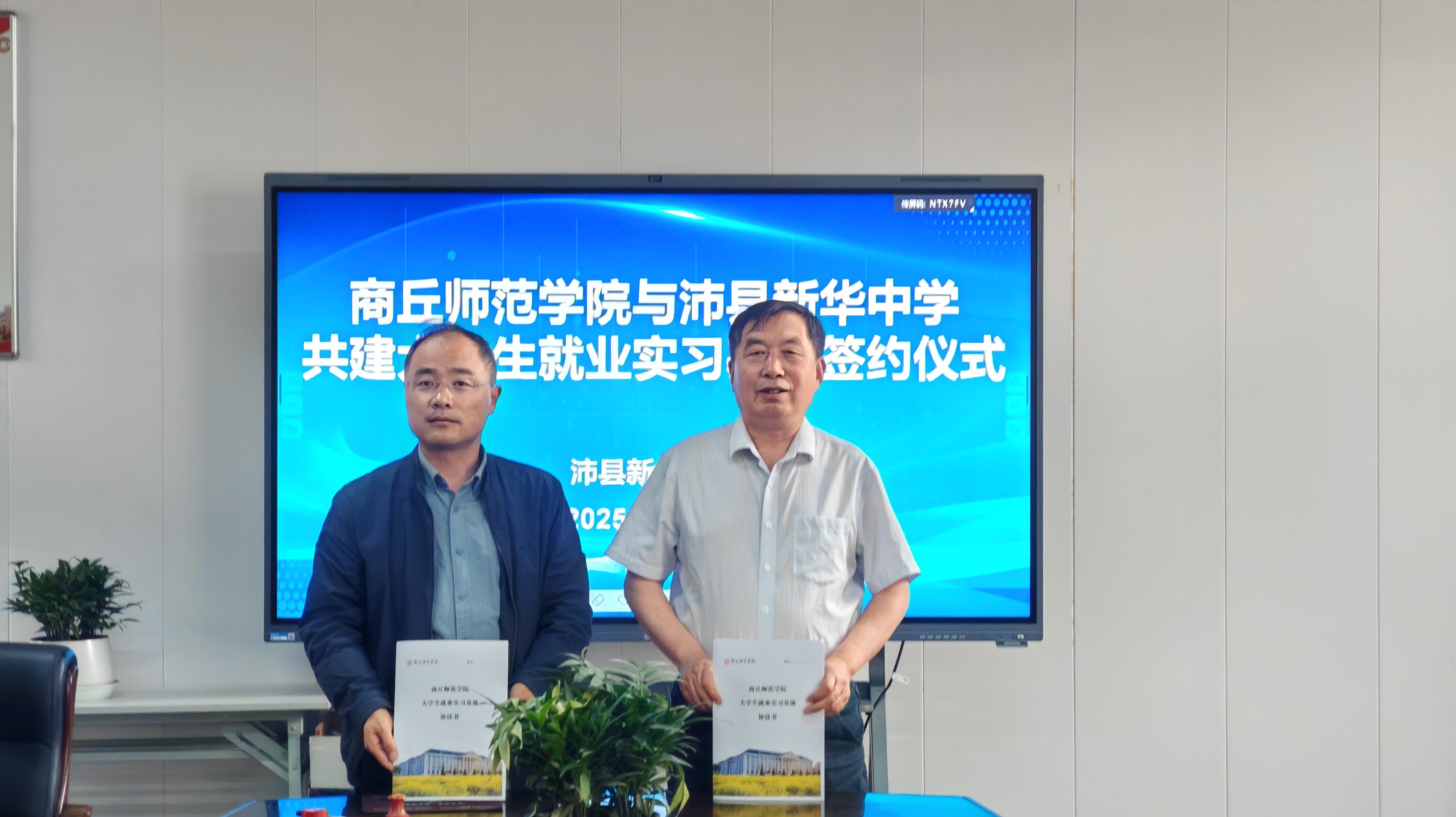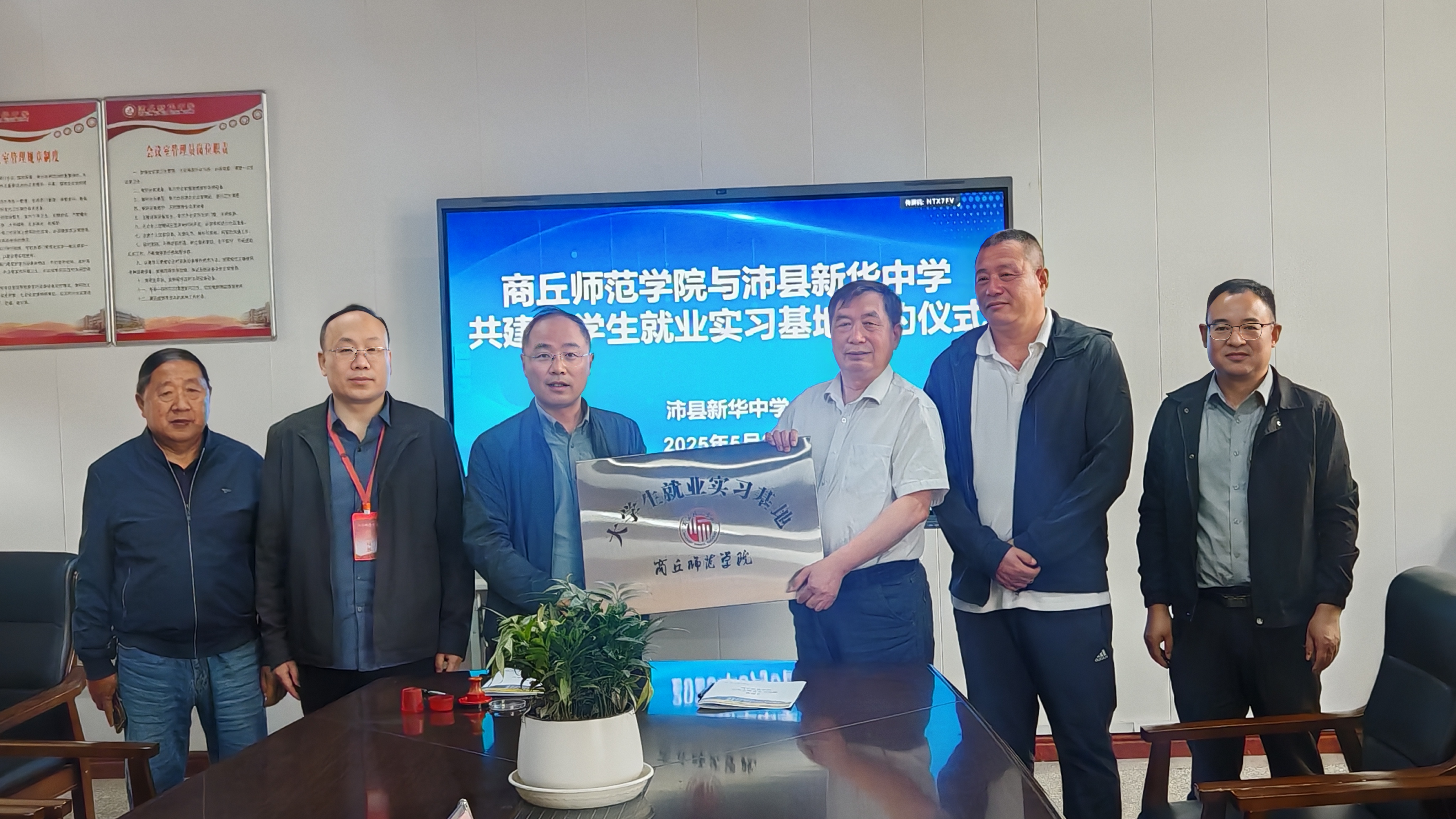 艾弗森贝博ballbet官网党委书记龚志宏与沛县新华中学张延敦签署大学生就业实习基地协议,举行了签约授牌仪式。