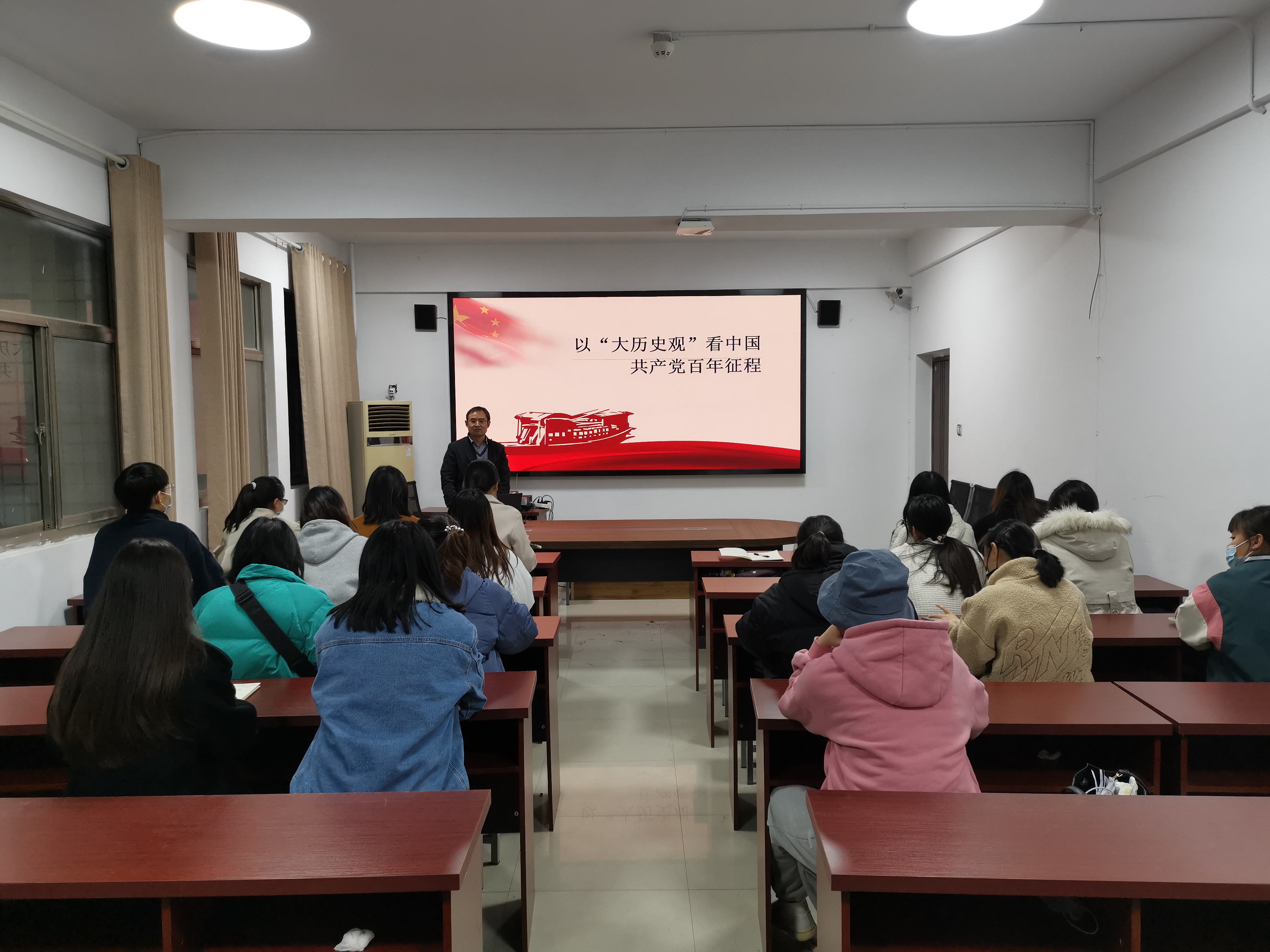 11月7日,艾弗森贝博ballbet官网党委副书记张文涛在行政楼817为入党积极分子讲授了一节名为“以大历史观看中国共产党百年征程”的专题党课。