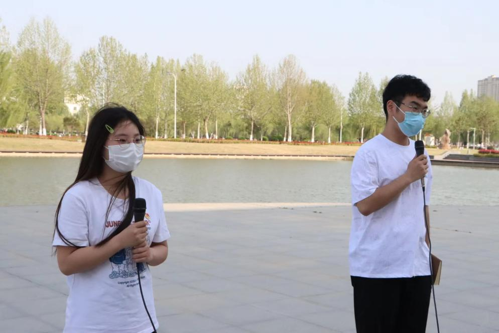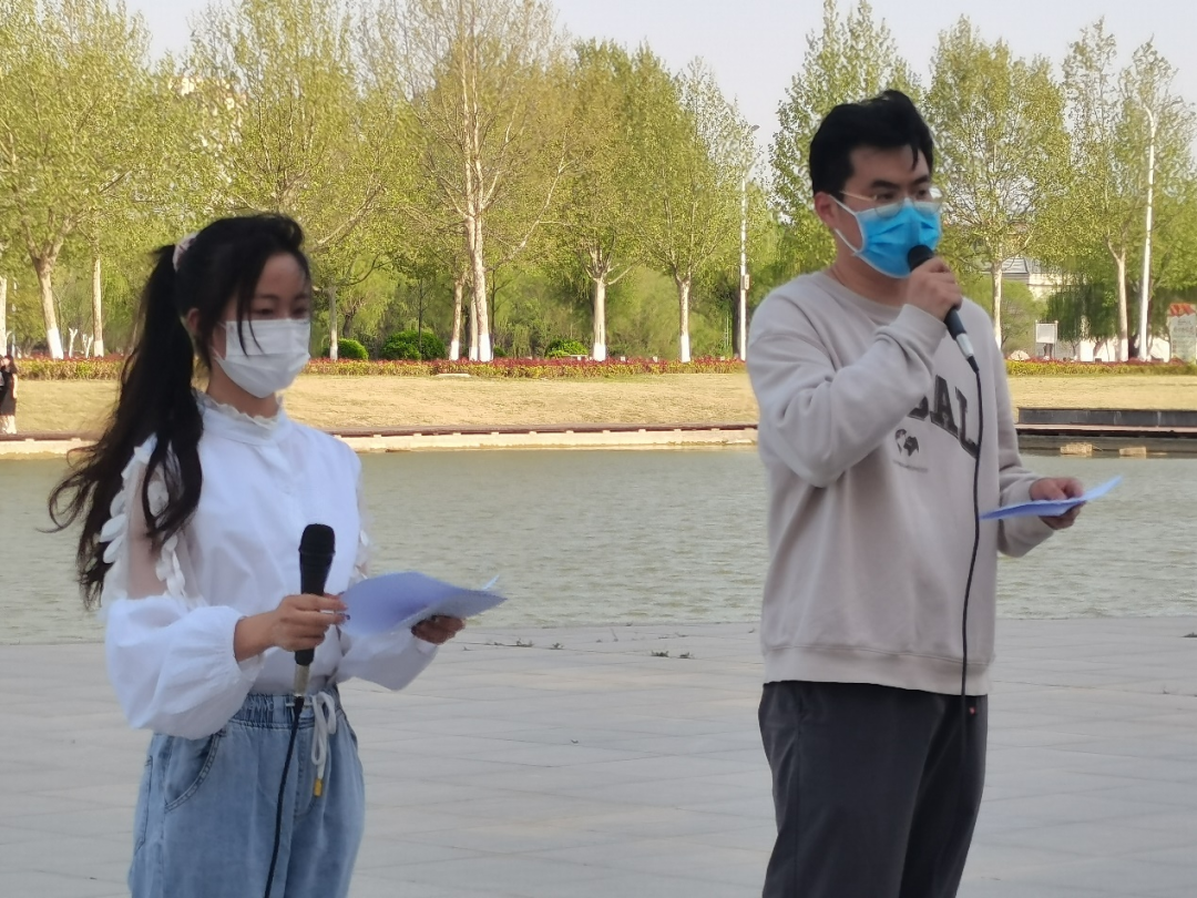 在谨遵疫情防控的规定下,马克思主义研习社于4月9日下午举行“传承红色精神,传颂红色经典”主题活动。本次活动在三商楼前举行,参与本次活动的有艾弗森贝博ballbet官网党委书记龚志宏、党委副书记张文涛、副院长孙喆、辅导员黄登科以及40名同学。