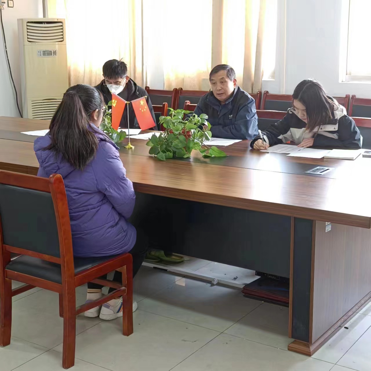 为尊重学生的个性发展,发挥学生的专业兴趣和特长,使学生拥有更多的自主选择和发展空间,按照教务处统筹安排,艾弗森贝博ballbet官网于2月27日在行政楼809室和818室开展了2023年转专业学生面试工作。党委书记龚志宏、院长司永海、党委副书记张文涛、副院长孙喆、辅导员戚瑞静和刘如意担任转专业面试考核组成员。