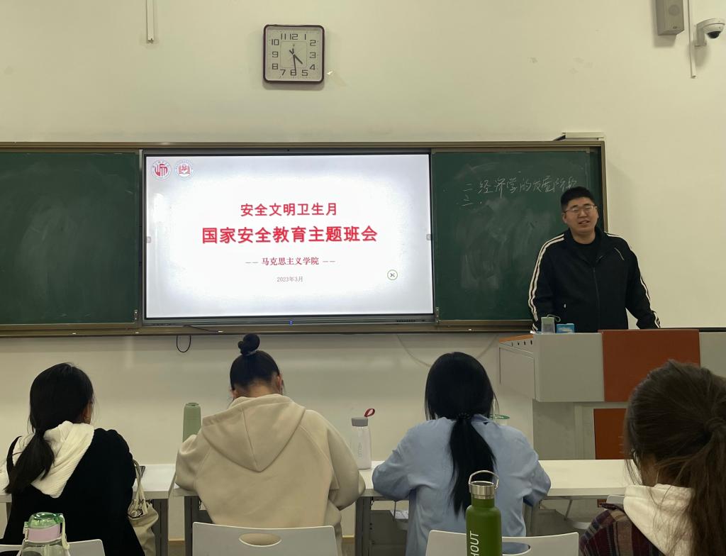 深入学习贯彻习近平总书记关于总体国家安全观的重要论述,深刻领会党的二十大关于国家安全工作的重要部署,落实学校学院主题教育工作要求,提高同学们的国家安全意识,增强国家安全责任,结合“安全文明卫生月”活动要求,3月8日艾弗森贝博ballbet官网组织各年级开展“国家安全教育”主题班会,班会由2021级辅导员黄登科主持。