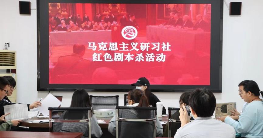 马克思主义研习社以学习经典理论、追求科学真理、弘扬实践精神、塑造有志青年为宗旨,致力于为思想政治教育拓展新的路径,使同学们在交流活动中学习马克思主义,学习贯彻习近平新时代中国特色社会主义思想,了解红色文化,普及红色文化知识。社团先后开展 “以先烈之烈魂,筑己代之风华”“迎国庆,感党恩”“学习二十大,青春心向党”系列红色主题沉浸式剧本杀活动,打造出了社团特色活动,广受青年学生喜爱。多次组织成员收听收看系列专家讲座,开设“红色密码·精神谱系”“微思政每天讲”等特色专栏,定期进行功勋人物宣讲,将红色基因融入青年学生血脉,以青春之力推动社会主义文化教育发展和新时代校园文化建设。特色活动红色主题剧本杀,被学校官网、河南省教育厅、豫教思语等平台推宣。