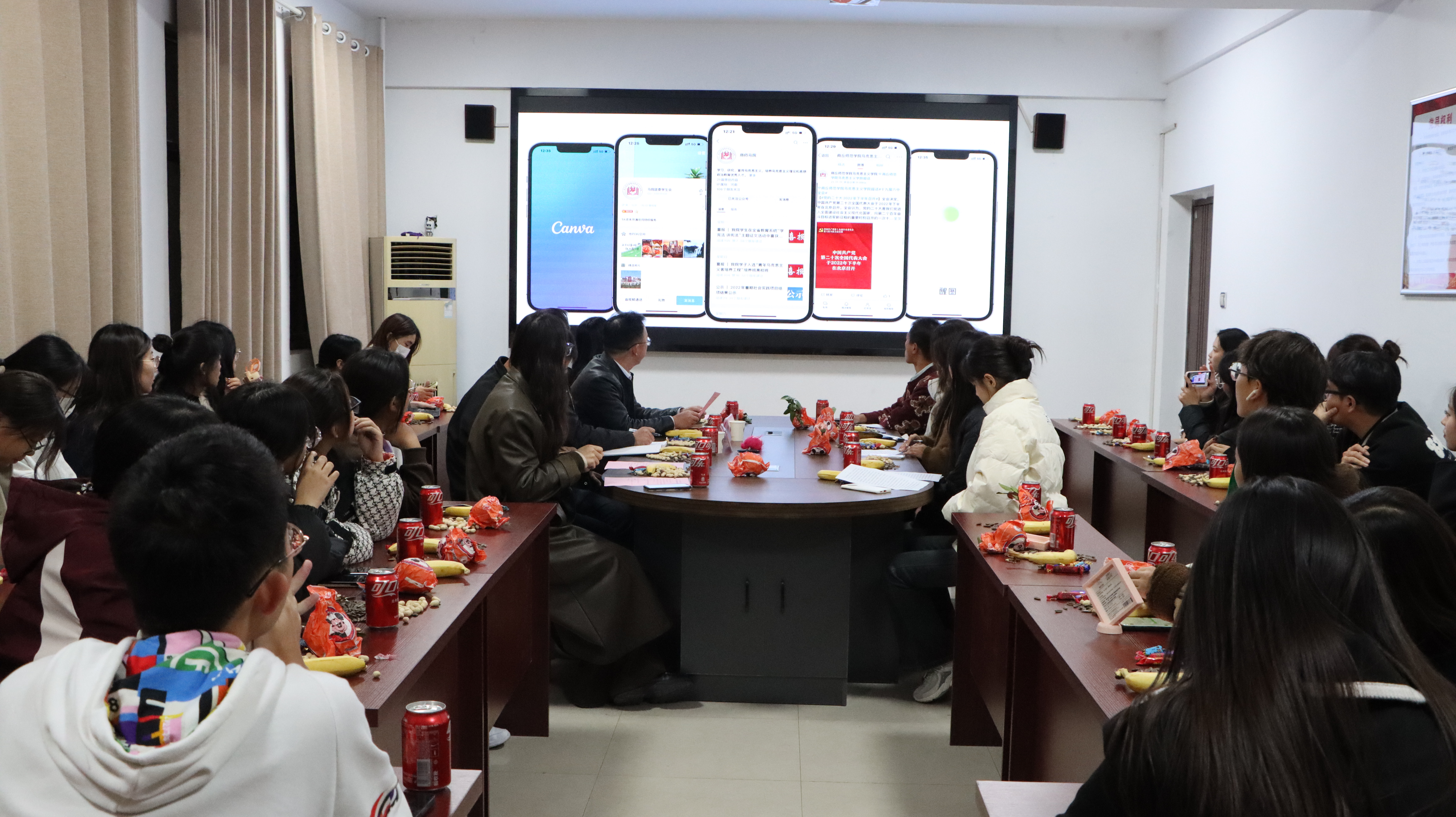 在交流分享环节,新媒体部分管主席吴亚鹏代表新媒体对过去的工作进行了总结,上届采编部部长金奕洁,新一届新媒体部部长徐嘉奕、摄影部长程大雪分别就分管工作进行交流,多名负责学院、班级宣传工作的同学围绕新媒体运营的成功经验以及如何平衡学习与工作等问题进行交流提问,大家畅所欲言,积极建言,气氛热烈。
