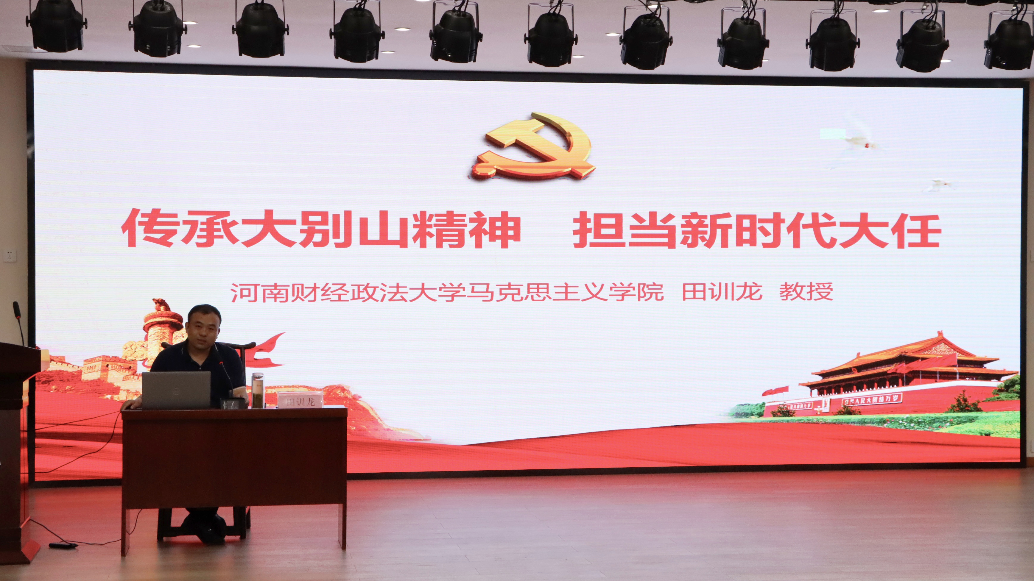 艾弗森贝博ballbet官网坚持全面贯彻党的教育方针,落实立德树人根本任务,将红色文化有效融入教学体系、实践体系、宣传体系,充分发挥红色文化立德树人、培根铸魂作用。此次青马红色文化节邀请河南财经政法大学艾弗森贝博ballbet官网院长田训龙教授作红色文化专题报告《传承大别山精神,担当新时代大任》。