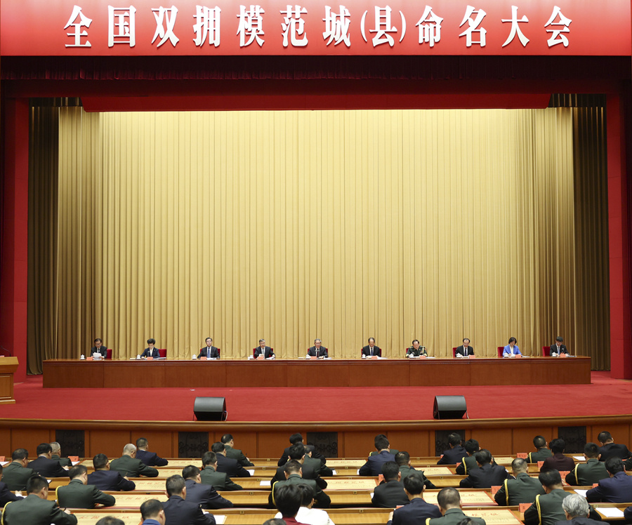 大会宣读了关于命名全国双拥模范城(县)的决定,并为全国双拥模范城(县)代表颁奖。有关军地代表作了发言。
